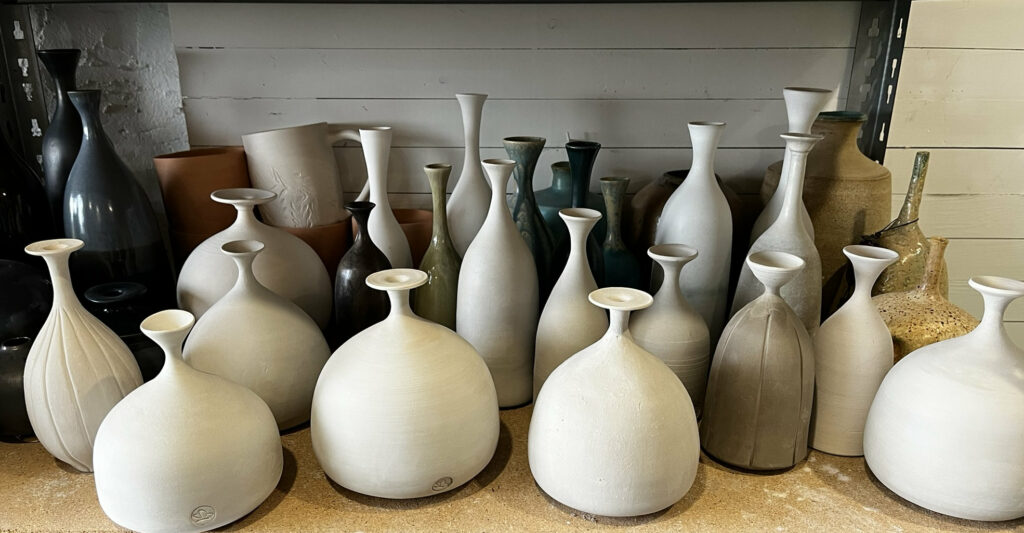 Dans mon atelier , je travaille le grés et la porcelaine au tour, mon inspiration est puisée dans la nature environnante tant pour ses formes que pour ses couleurs .
