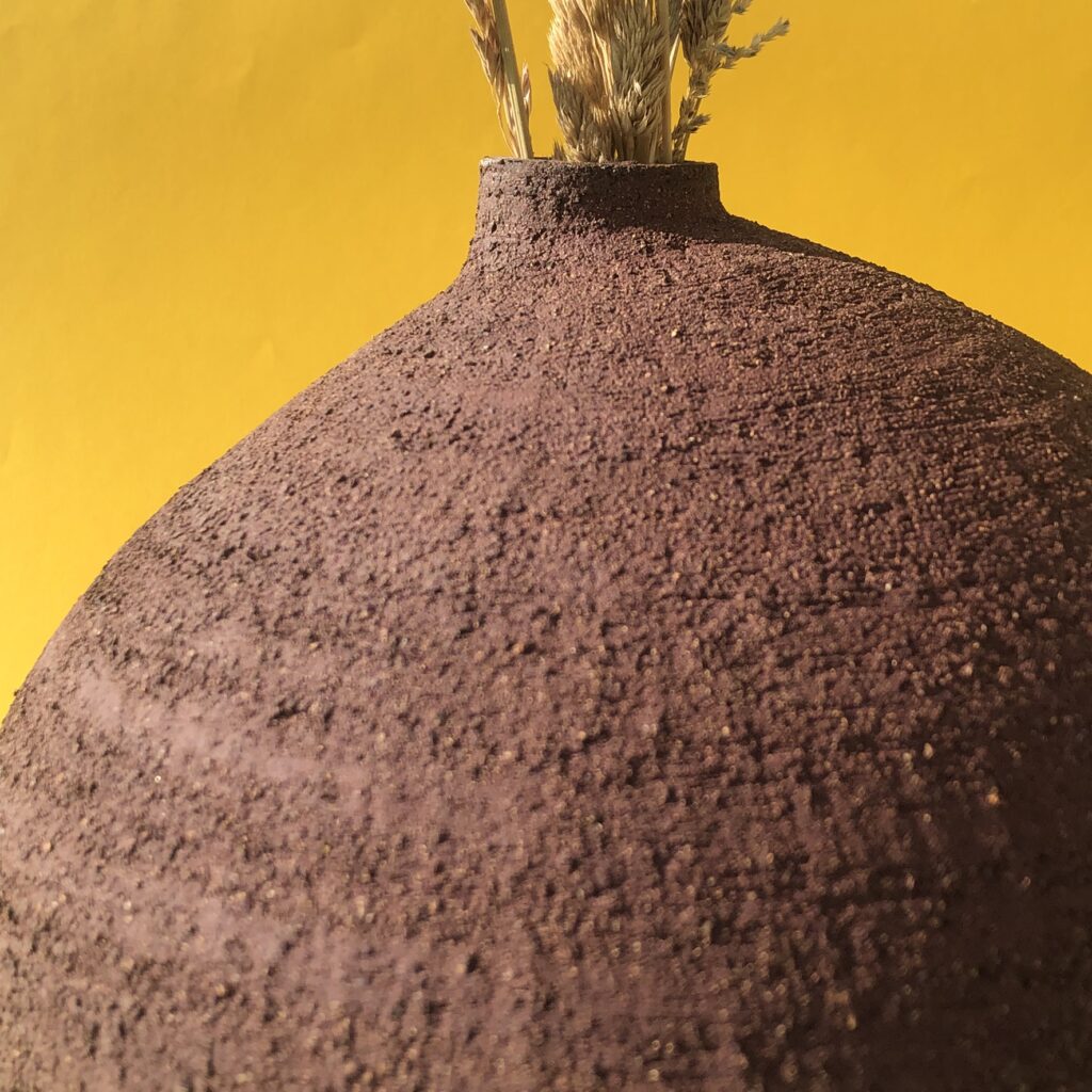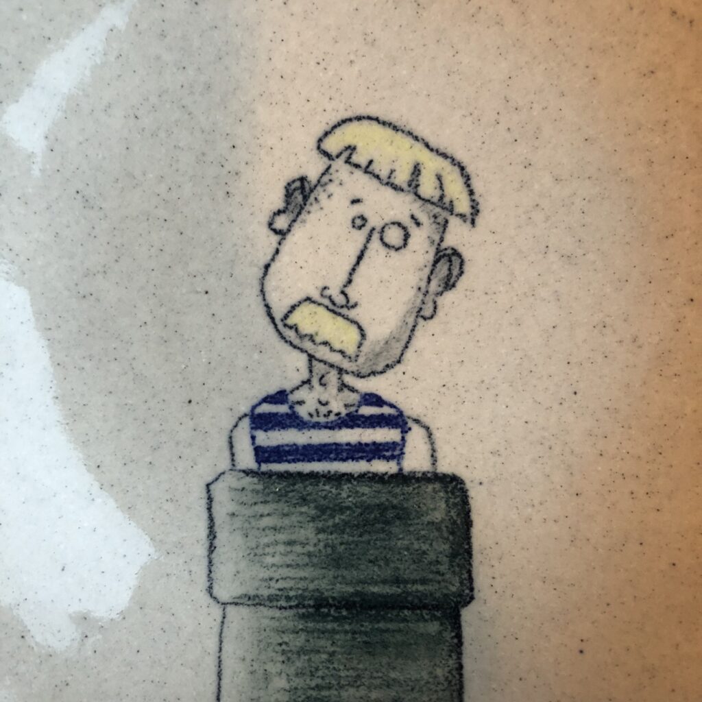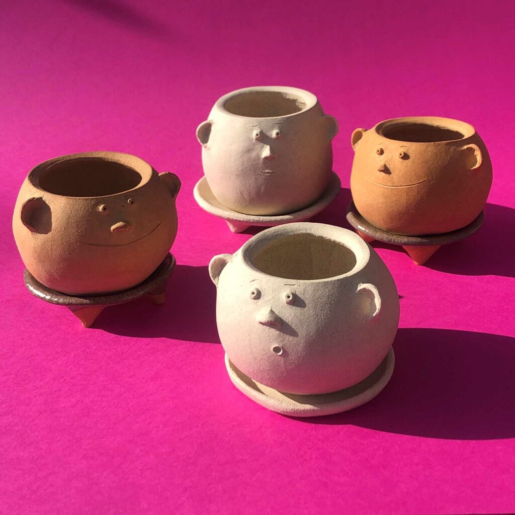 Je travaille la terre par la technique primitive du modelage, principalement des grès. Au cours du processus de création, l’aspect mouvant et organique de la matière m’inspire des formes relatives au vivant. Ainsi, une large part des pièces que je réalise représente des visages ou des corps anthropomorphiques et zoomorphiques aux traits caricaturaux, pots ou masques. Je réalise également des vases ou cache-pots que je monte aux colombins en recherchant des courbes asymétriques et sur lesquels je travaille la texture avec des ornementations finement creusées, modelées, dessinées ou peintes. Aussi, j’ai développé une série autour de la vaisselle, principalement des assiettes creuses en grès chamotté blanc, sur lesquelles je dessine au crayons oxyde ou bien peintes avec des engobes colorés. Je peux réaliser des dessins sur demande.