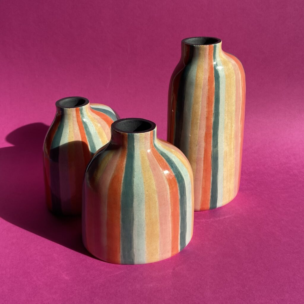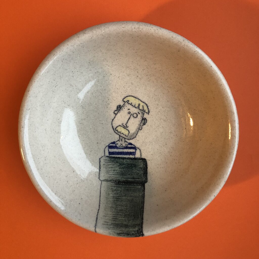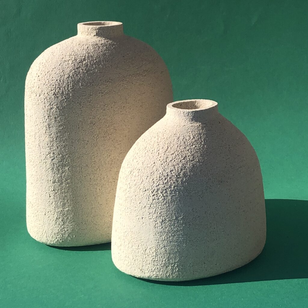 Je travaille la terre par la technique primitive du modelage, principalement des grès. Au cours du processus de création, l’aspect mouvant et organique de la matière m’inspire des formes relatives au vivant. Ainsi, une large part des pièces que je réalise représente des visages ou des corps anthropomorphiques et zoomorphiques aux traits caricaturaux, pots ou masques. Je réalise également des vases ou cache-pots que je monte aux colombins en recherchant des courbes asymétriques et sur lesquels je travaille la texture avec des ornementations finement creusées, modelées, dessinées ou peintes. Aussi, j’ai développé une série autour de la vaisselle, principalement des assiettes creuses en grès chamotté blanc, sur lesquelles je dessine au crayons oxyde ou bien peintes avec des engobes colorés. Je peux réaliser des dessins sur demande.